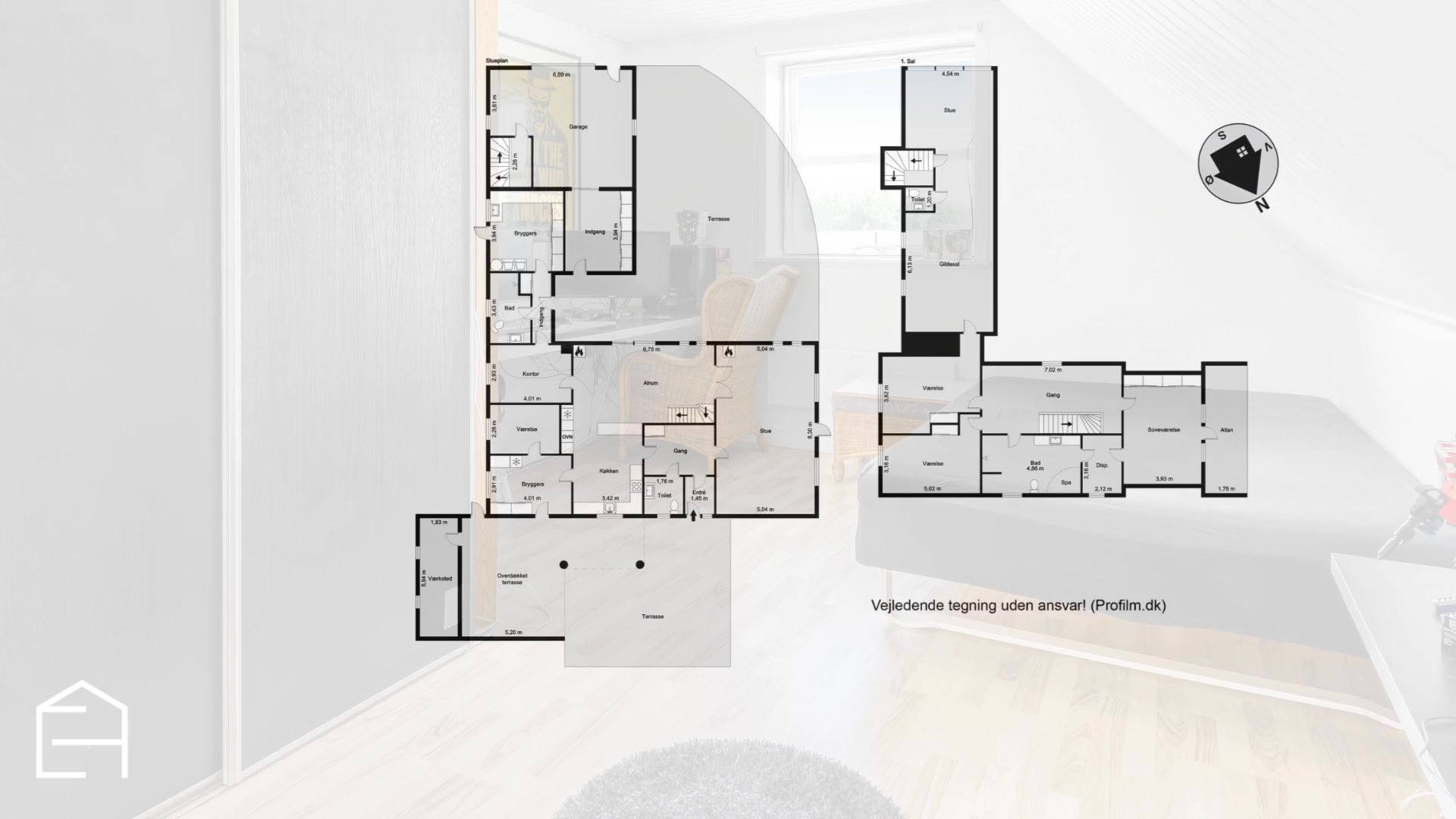 Førstesalen giver jer endnu mere fleksibilitet med en stor opholdsstue/gildesal med eget toilet, soveværelse med altan, to værelser og endnu et badeværelse. Perfekt til teenagere, hjemmekontor, hobbyrum eller gæsteafdeling.