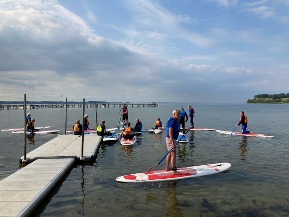 For at sætte fokus på den gode genstart og de mange spændende aktiviteter i kommunen både før, under og efter sommerferien, hoppede de vandglade i bølgen blå og stiftede altså bekendtskab med den nye trend, SUP – Stand Up Paddeling – hvor DGI og VBIF Outdoor stillede boards til rådighed.
