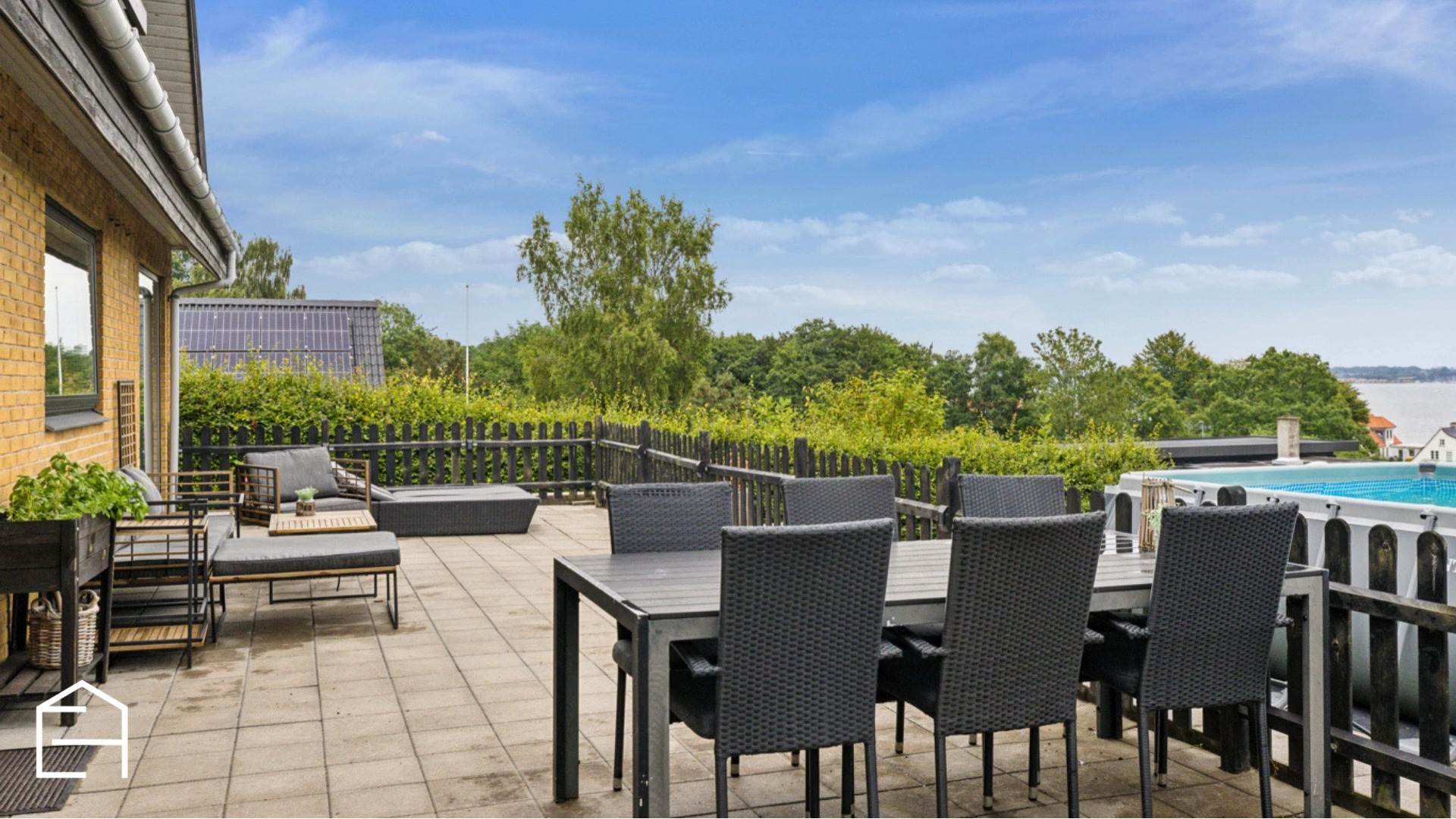 Denne moderne villa er beliggende i Rinkenæs. En ejendom der, udover den fuldstændig betagende udsigt, rummer et hyggeligt hjem med yderst moderne opdateringer, der gør hverdagen lettere. Ejendommen rummer 4 værelser + badeværelse på 1. salen, samt et værelse og et badeværelse på stueplanen, der fører videre til det store køkken-alrum, der har direkte udgang til terrassen.